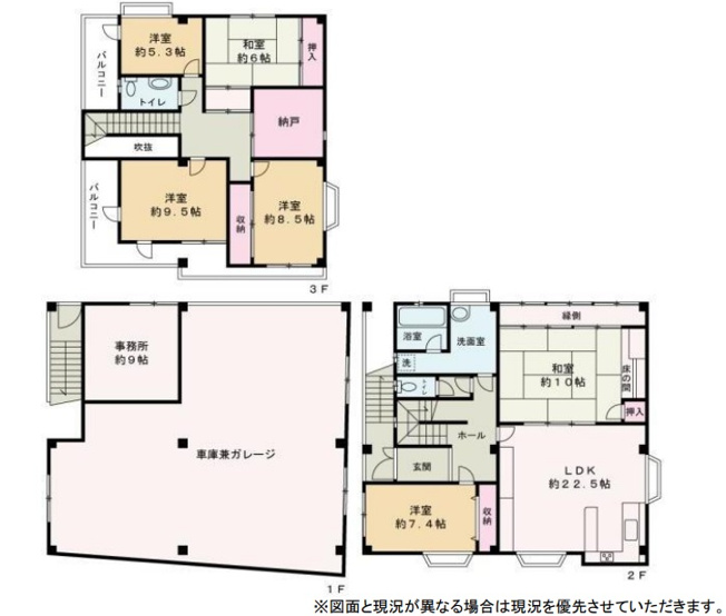 1階が車庫兼ガレージになります。7SLDKのお家です。
