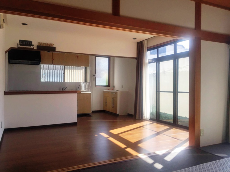 写真は、1階のリビングと和室、キッチン、浴室になります。